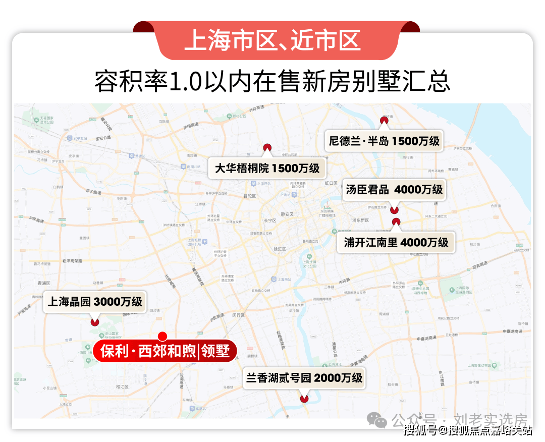 再来看上海目前在售的新房,容积率低于1.0的项目,仅有寥寥十几盘而已,而近市区的低密别墅总价1500万起步,动辄上4000万。