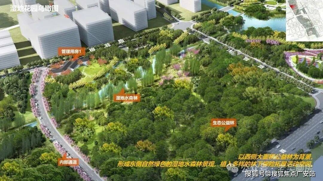 整座公园(在建中)设计了四大功能分区:湿地花园区、鸣湖共享区、林荫跃动区和社邻园艺区,嵌入人性化和生态化的设施,激活场地引人入园,堪称未来业主的休闲放松胜地!